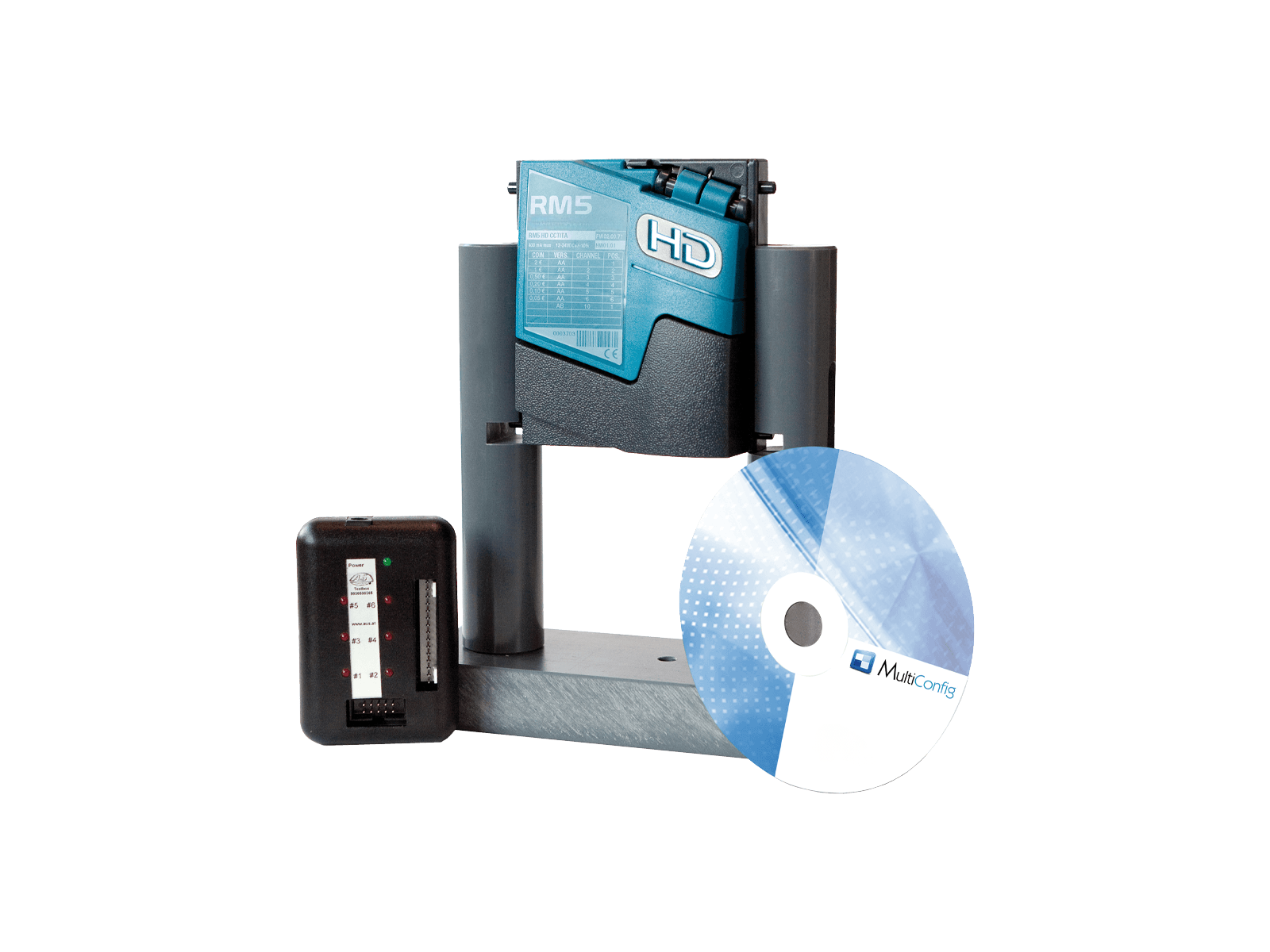Includes coin validator support, test box, power supply, interface cable and the MultiConfig software.